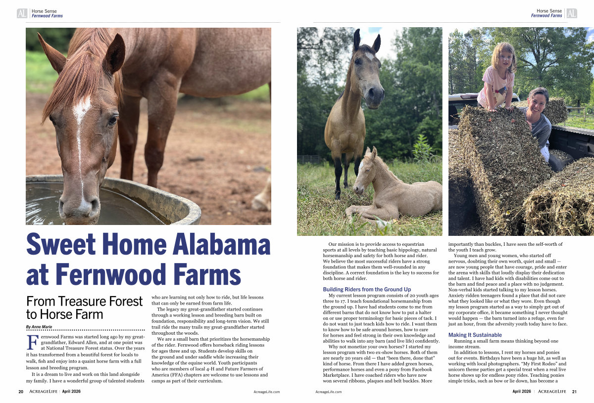 Fernwood Farms was started long ago by my greatgrandfather, Edward Allen, and at one point was at National Treasure Forest status. Over the years it has transformed from a beautiful forest for locals to walk, fish and enjoy into a quaint horse farm with a full lesson and breeding program.