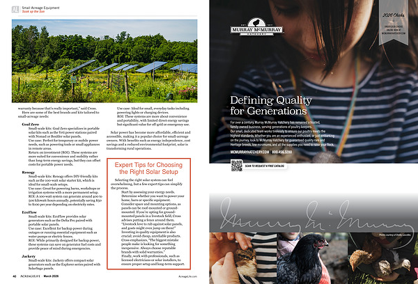 Solar power has become more affordable, efficient and accessible, making it a popular choice for small-acreage owners. With benefits such as energy independence, cost savings and a reduced environmental footprint, solar is transforming rural operations.