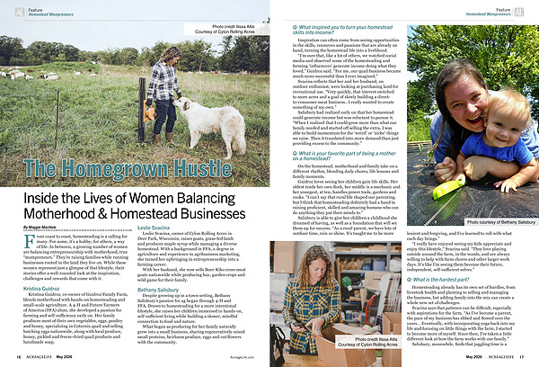 From coast to coast, homesteading is a calling for many. For some, it’ s a hobby; for others, a way of life. In between, a growing number of women are balancing entrepreneurship with motherhood, true“ mompreneurs.” They’ re raising families while running businesses rooted in the land they live on. While these women represent just a glimpse of that lifestyle, their stories offer a well-rounded look at the inspiration, challenges and rewards that come with it.