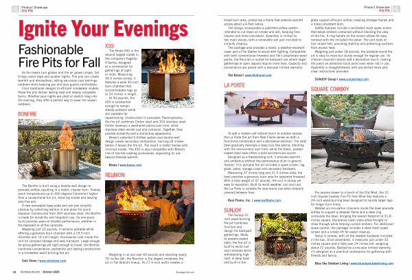 Breeo’ s patented X Airflow system and double-wall design create secondary combustion, burning off smoke before it leaves the fire pit. The result is hotter flames with minimal smoke. The X30 is also compatible with Breeo’ s line of live-fire cooking accessories, expanding its use beyond fireside warmth.